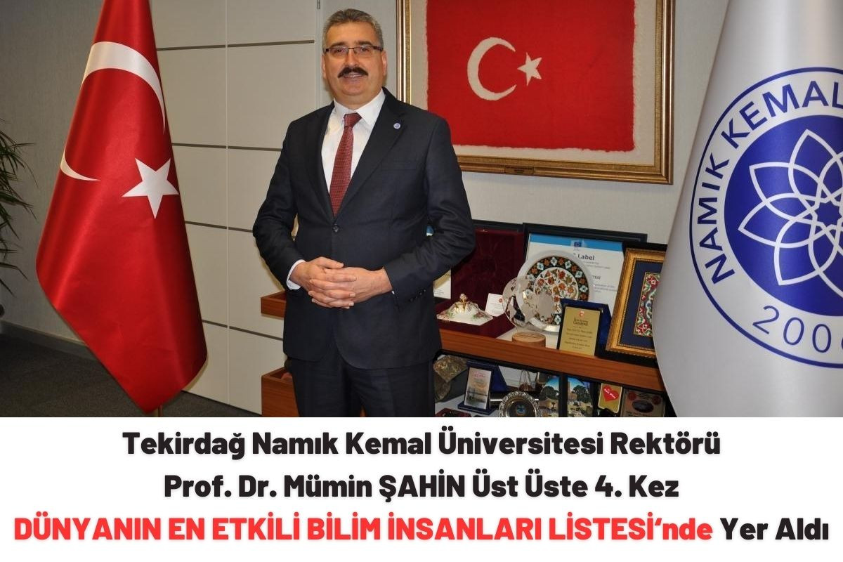 Tekirdağ Namık Kemal Üniversitesi Rektörü Prof. Dr. Mümin ŞAHİN üst üste 4. kez Dünyanın En Etkili Bilim İnsanları Listesinde “kariyer boyu etki” kategorisinde yer alarak önemli bir başarıya imza atmıştır.