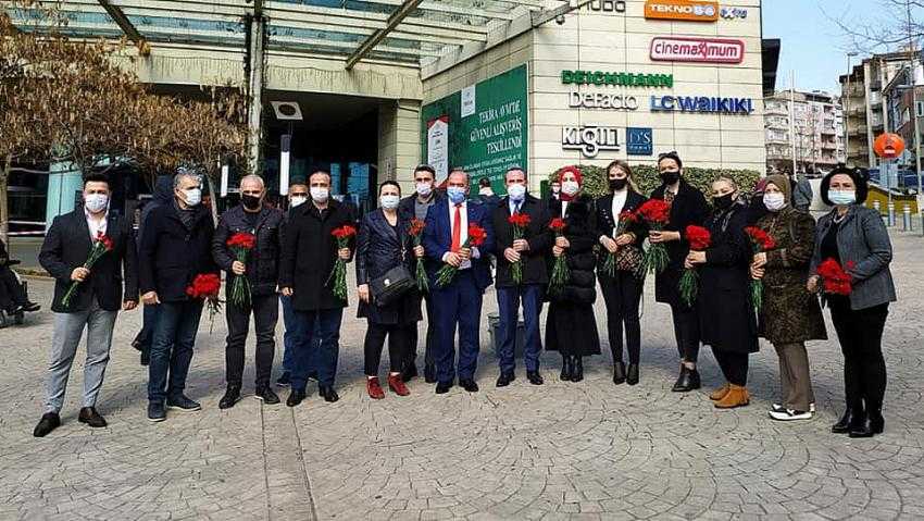 İlçe Başkanı Sezayi Çetin, İl Başkan Yardımcıları Niyazi Kayhan, Bayram Başelma, İl Koordinatörü Barış Kıyar, İl ve İlçe Yöneticileri ile İl ve İlçe Kadın ve Gençlik Kolları Teşkilatı 8 Mart Dünya Kadınlar Günü münasebetiyle Hükümet Caddesi ve Tekira önünde bayanlarımıza karanfil hediye ederek günlerini kutladılar.