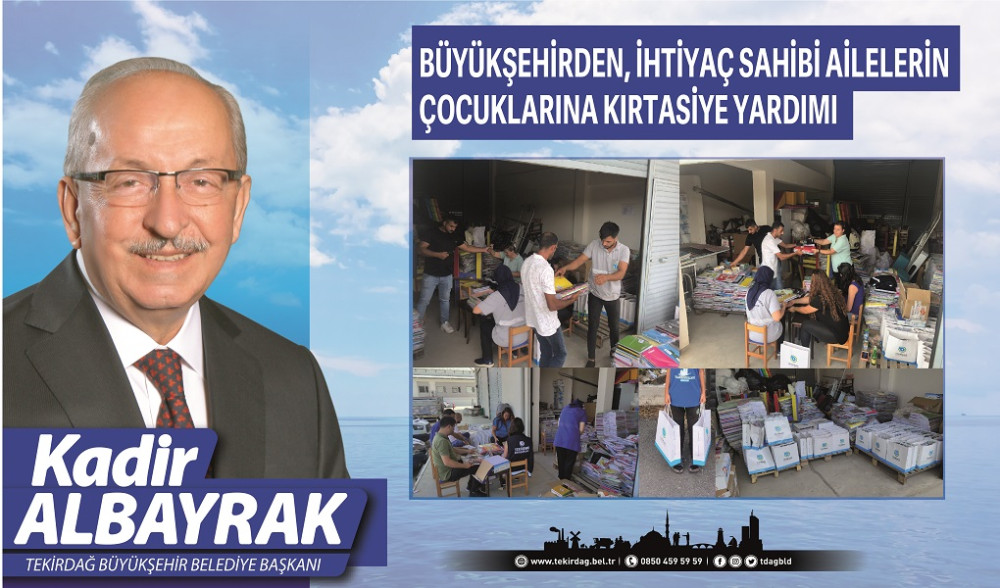 2022-2023 Eğitim Öğretim yılı öncesi ihtiyaç sahibi ailelerin yanında olduklarını belirten Tekirdağ Büyükşehir Belediye Başkanı Kadir Albayrak, “Tekirdağ Büyükşehir Belediyesi olarak, sosyal belediyecilik anlayışı çerçevesinde ihtiyaç sahibi vatandaşlarımıza, yeni eğitim öğretim yılı öncesi destek olmak amacıyla kırtasiye malzemesi dağıtımını gerçekleştirdik. Bu sayede ailelerimize bir nebze de olsa katkı sağlayabildiysek, çocuklarımızın yüzlerini güldürebildiysek ne mutlu bize. Bu duygu ve düşüncelerle 2022-2023 Eğitim Öğretim yılının hayırlı olmasını diliyor, tüm öğrencilerimize, başarılarla dolu bir eğitim hayatı geçirmelerini temenni ediyorum” dedi.