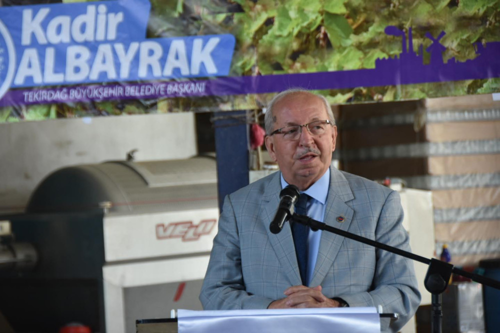 Mursallı Mahallesi’nde düzenlenen törende Tekirdağ Büyükşehir Belediyesi Tarımsal Hizmetler Dairesi Başkanı Dr.Fatih Bakanoğulları üzüm suyu soğutma ve depolama tankı ile ilgili teknik bilgiler paylaştı ve Tekirdağ Büyükşehir Belediyesi’nin tarımsal alanda hayata geçirdiği projeler ile ilgili bilgiler verdi. Törende konuşma yapan Tekirdağ Büyükşehir Belediye Başkanı Kadir Albayrak, “Üzüm denilince akla Tekirdağ gelir. Tekirdağ’da üzüm yetiştiriciliğinin merkezi Şarköy’dür. Tekirdağ Büyükşehir Belediyesi olarak geçtiğimiz yıllarda Bağcılığı Geliştirme Projemiz kapsamında verimliliği arttırmaya yönelik önemli projeler gerçekleştirdik. Destekleme projelerimizle üzüm yetiştiriciliğini daha kârlı ve cazip hale getiriyoruz. Organik meyve suyuna yönelik son yıllarda artan talep, üzüm suyu üretimini yükselen bir trend haline getirdi. Tekirdağ Büyükşehir Belediyesi olarak geçtiğimiz Mart ayında Mursallı Tarımsal Kalkınma Kooperatifi’ne 10 tonluk üzüm suyu soğutma ve depolama tankı hibe ettik. Bugün itibariyle kooperatifimize 10 tonluk bir üzüm suyu soğutma ve depolama tankı daha kazandırmış bulunuyoruz. Hibe ettiğimiz 10’ar tonluk 2 tank ile kooperatifimizin daha önce 35 ton olan depolama kapasitesini 55 tona çıkardık. Yeni üzüm suyu soğutma ve depolama tanklarımız, kendi soğutma sistemine, elektronik kantara ve çift duvara sahip olup, modern ve hijyeniktir. Üzüm Suyu Soğutma ve Depolama Tankımızın siz değerli üreticilerimize hayırlı olmasını diliyor, tüm çiftçilerimize bereketli ve bol kazançlı bir yıl diliyorum. Kırsal kalkınmayı geliştirmeye yönelik desteğimiz devam edecek, Tekirdağ tarımı daha da gelişecek.” dedi.