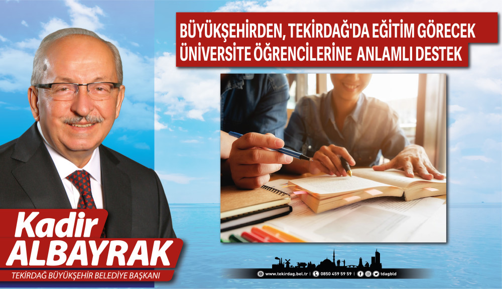 Tekirdağ’a üniversite eğitimi almak için gelen öğrencilerin yaşadığı barınma sıkıntısına kayıtsız kalamayacaklarını belirten Tekirdağ Büyükşehir Belediye Başkanı Kadir Albayrak, “Ailelerinden uzakta yeni bir hayata başlarken öğrencilerimizin yaşadığı barınma sıkıntısına çözüm olmak için Tekirdağ Büyükşehir Belediyesi olarak yürüttüğümüz çalışmalar sonucunda, il dışından Tekirdağ’ımıza üniversite eğitimi almak için gelen evlatlarımızı, kalıcı bir yer buluncaya kadar Büyükşehir Belediyemizin anlaşmalı olduğu yerlerde geçici olarak misafir edeceğiz. Parlak ve güzel bir geleceğe adım atmak için eğitim hayatına başlayacak evlatlarımızın her zaman yanlarında olacağız.” dedi.