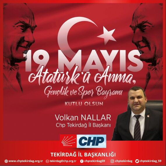 Chp Tekirdağ İl Başkanı Volkan Nallar'dan 19 Mayıs Atatürk'ü Anma, Gençlik ve Spor Bayramı için mesaj yayınladı.