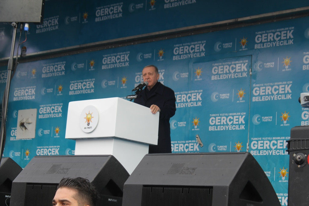 Yaklaşık 10 bin kişinin izlediği mitingde Belediye Başkan Adaylarını tanıtan Cumhurbaşkanı Erdoğan hükümetin Tekirdağ’a büyük yatırımlar yaptığını söyledi.