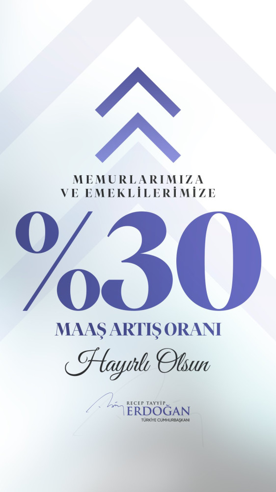Cumhurbaşkanı Erdoğan, "Dün ve bugün yürütülen çalışmalar sonucunda memur ve emekli maaş artış oranını yüzde 30'a çıkaracak imkanlar sağladık. Buradan memurlarımıza ve tüm emeklilerimize ocak ayı maaş artışlarının yüzde 30 olarak uygulanacağı müjdelerini veriyoruz.