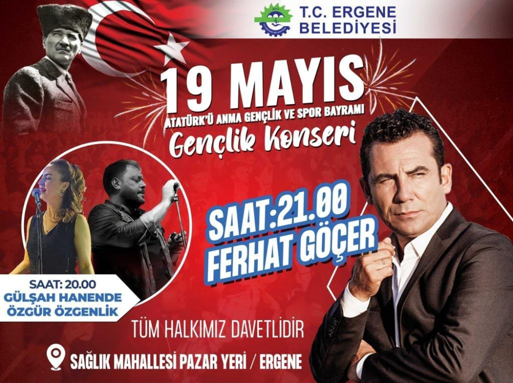 Ferhat Göçer 19 Mayısta Ergene'de Sahne Alacak