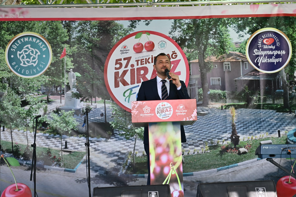 Son olarak konuşmasını gerçekleştiren Süleymanpaşa Belediye Başkanı Cüneyt Yüksel, 4 yıllık görev süresinde bir yandan hizmet üretmek için çalışırken diğer yandan pandemi, orman yangınları, seller ve 11 ilimizi etkileyen asrın felaketi boyutlarındaki deprem gibi büyük afetlerle mücadele etmek zorunda kaldıklarına vurgu yaptı. Yüksel, “Pandemi nedeniyle iki yıl yapamadığımız festivalimizde geçen yıl 2 buçuk milyon yerli ve yabancı misafirimizi şehrimizde ağırladık. Kiraz Festivali 57 yıldır düzenlenen köklü bir etkinlik olmasının yanı sıra bir özelliğe daha sahip. O da 215 bin hemşehrimin birlik ve beraberlik içinde gerçekleştirdiği, Trakya insanının misafirperverliğini gösterdiği bir etkinlik olmasıdır. Bu vesileyle tüm hemşehrilerime şükranlarımı sunuyorum. Bu yıl 3 milyonun üzerinde katılım hedeflediğimiz festivalimizde Pazar gecesine kadar çok sayıda eğlenceli etkinlikte birlikte olacağız,” dedi.