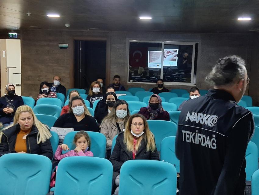 Süleymanpaşa Belediyesi Halkla İlişkiler Müdürlüğü tarafından organize edilen “En İyi Narkotik Polisi Anne” semineri, Tekirdağ İl Emniyet Müdürlüğü Narkotik Şube Müdürlüğü ekipleri tarafından verilirken, seminerde narkotik maddelerin özellikleri, korunma ve tedavi yöntemleri ile ilgili bilgiler paylaşıldı.