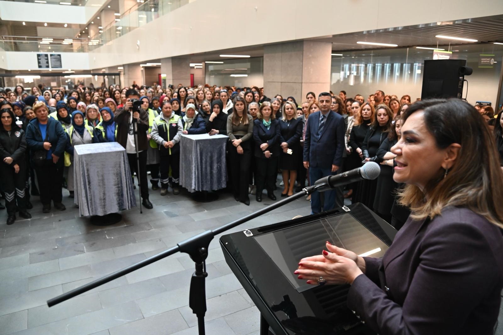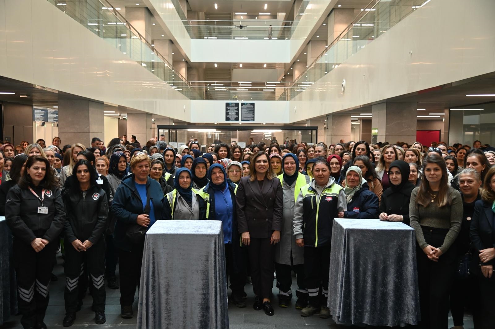 “Bu dünyada aslında her yer kadının emeğiyle şekilleniyor. Bu toplumun temeli kadınlardır. Sizler de Büyükşehir Belediyesi’nin temelini oluşturan değerli çalışanlarsınız. Kadının elinin değdiği her yer değişir, güzelleşir. Kadının olduğu her yerde emek, adalet, barış, eşitlik ve demokrasi vardır.” dedi.
