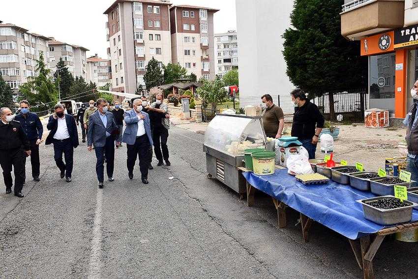 Vali Aziz Yıldırım, tam kapanma döneminde kurulan pazar yerlerini ziyaret ederek denetimlerde bulundu.
